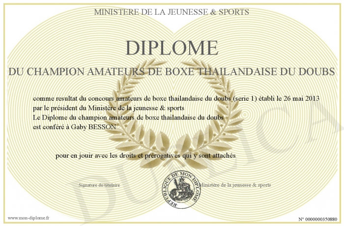 Envoyez par email votre Diplôme du champion amateurs de boxe thailandaise du doubs personalisé