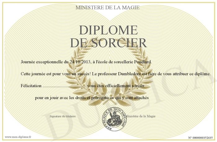 Envoyez par email votre Diplôme de sorcier personalisé