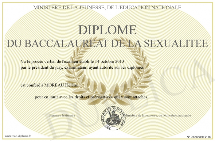 Envoyez par email votre Diplôme du baccalaureat de la sexualitée personalisé