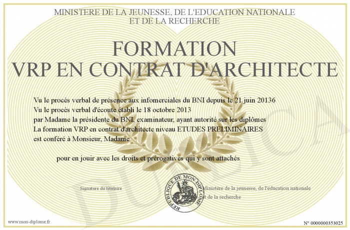 Envoyez par email votre formation VRP en contrat d'architecte personalisé