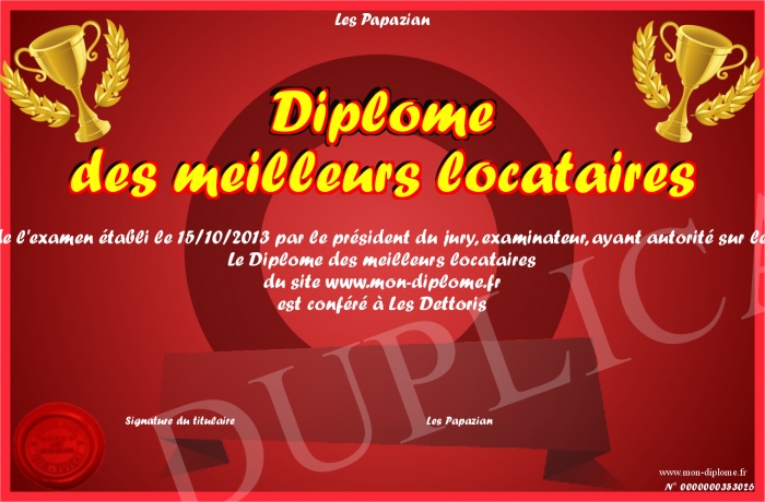 Envoyez par email votre Diplôme des meilleurs locataires personalisé