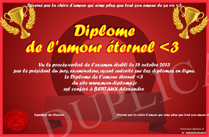 Envoyez par email votre Diplôme de l'amour éternel -3 personalisé