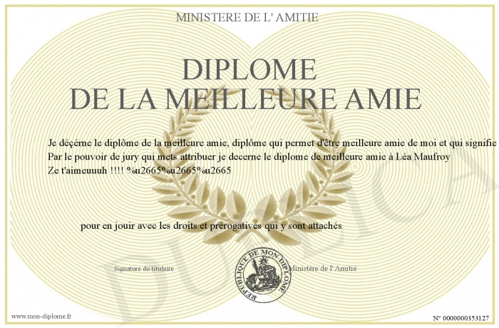 Envoyez par email votre Diplôme de la Meilleure Amie personalisé