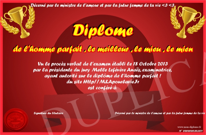 envoyé par le Décerné par le ministre de l'amour et par la futur femme de ta vie -3 -3. !