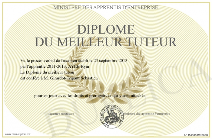 Envoyez par email votre Diplôme du meilleur tuteur personalisé