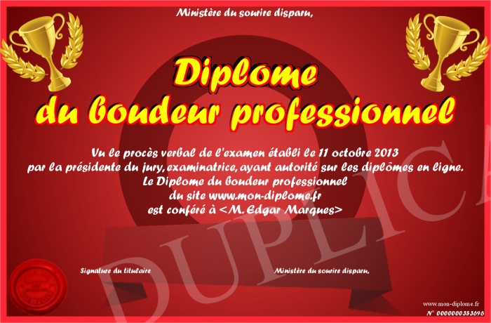 Envoyez par email votre Diplôme du boudeur professionnel personalisé