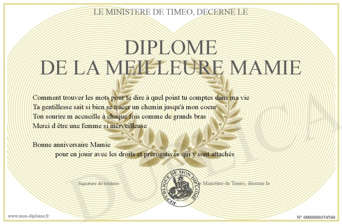 Envoyez par email votre Diplôme de la meilleure mamie personalisé