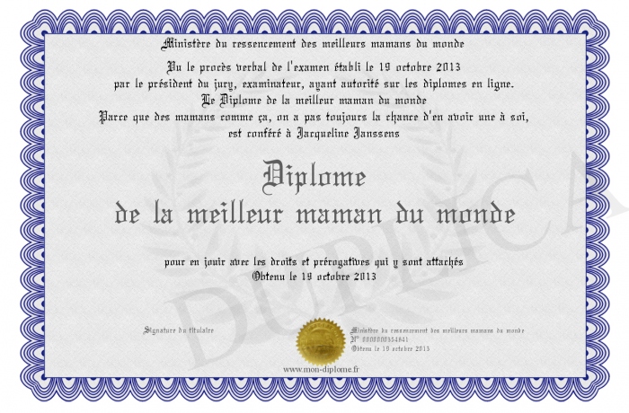 Envoyez par email votre Diplôme de la meilleur maman du monde personalisé