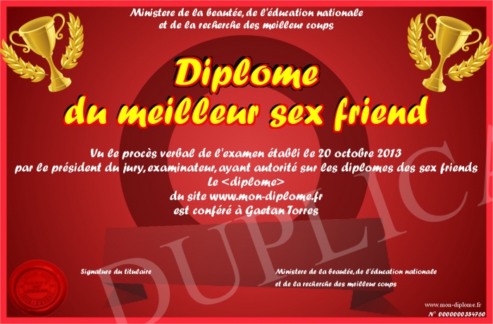 Envoyez par email votre Diplôme du meilleur sex friend personalisé