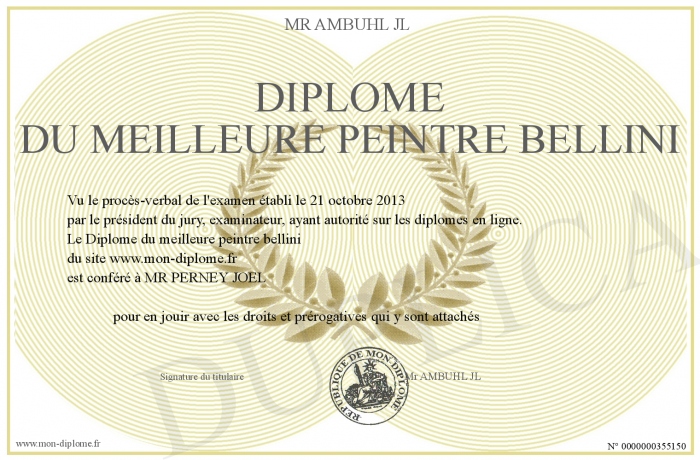 Envoyez par email votre Diplôme du meilleure peintre bellini personalisé