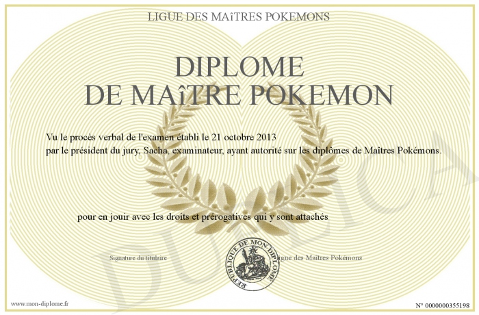Envoyez par email votre Diplôme de Maître Pokémon personalisé