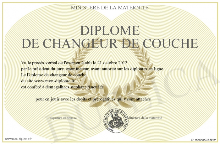 Envoyez par email votre Diplôme de changeur de couche personalisé