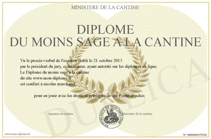 Envoyez par email votre Diplôme du moins sage a la cantine personalisé