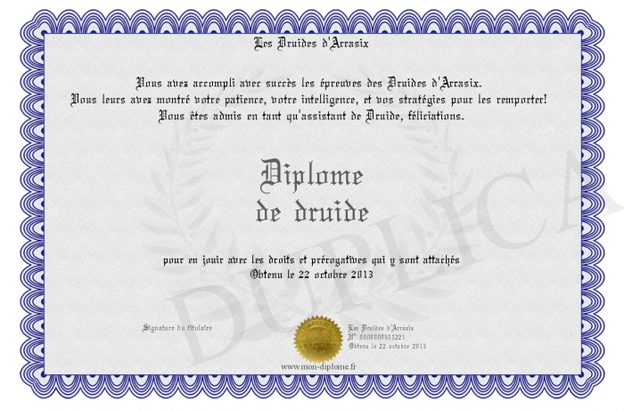 Envoyez par email votre Diplôme de druide personalisé