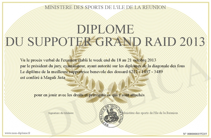 Envoyez par email votre Diplôme du suppoter grand raid 2013 personalisé