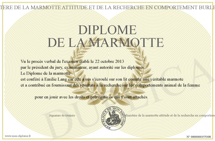 Envoyez par email votre Diplôme de la marmotte personalisé