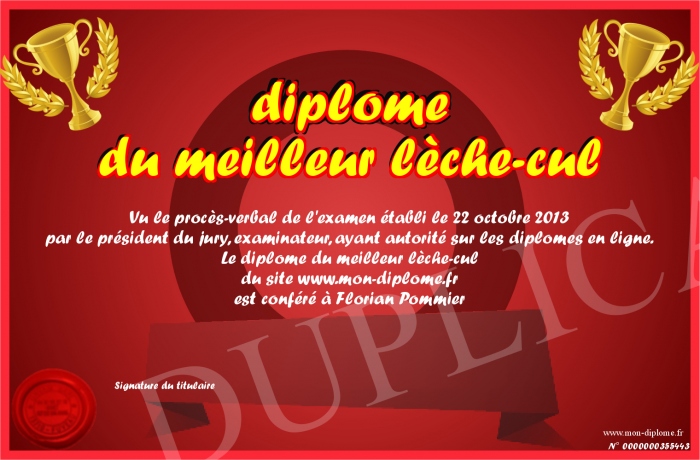 Envoyez par email votre diplôme du meilleur lèche-cul personalisé