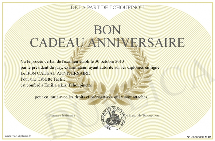 Envoyez par email votre BON CADEAU ANNIVERSAIRE personalisé