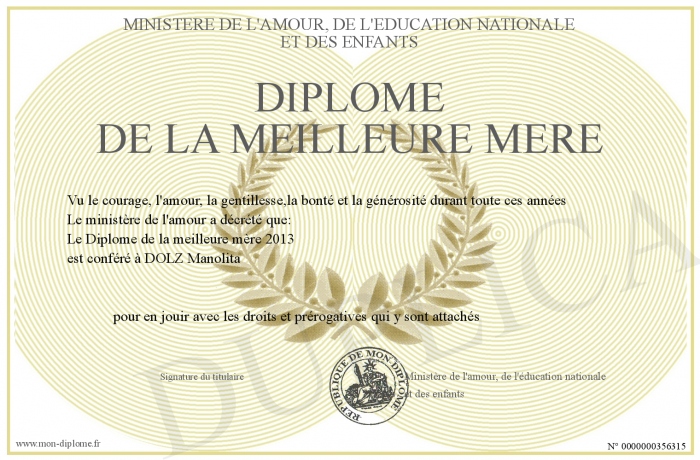 Envoyez par email votre Diplôme de la meilleure mère personalisé