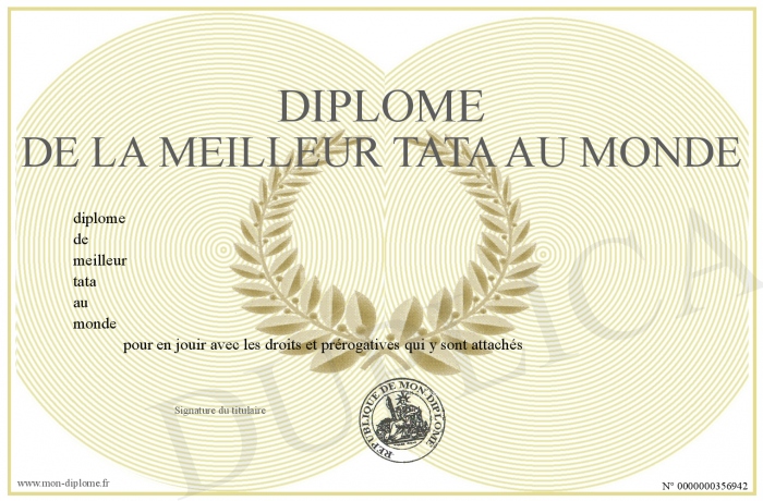 Envoyez par email votre diplome de la meilleur tata au monde personalisé
