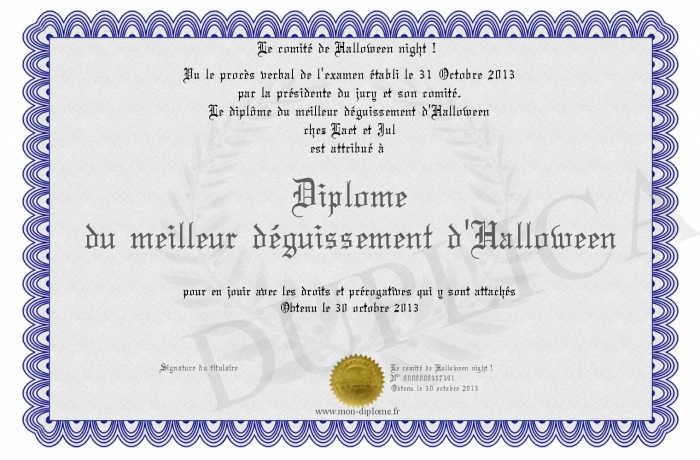 Envoyez par email votre Diplôme du meilleur déguissement d'Halloween personalisé