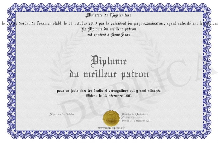 Envoyez par email votre Diplôme du meilleur patron personalisé