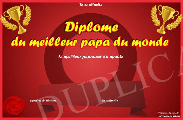 Envoyez par email votre Diplome du meilleur papa du monde personalisé