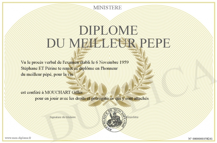 Envoyez par email votre Diplôme du meilleur pépé personalisé