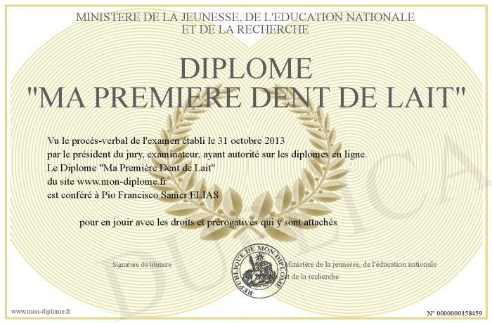 Envoyez par email votre Diplôme -Ma Première Dent de Lait- personalisé