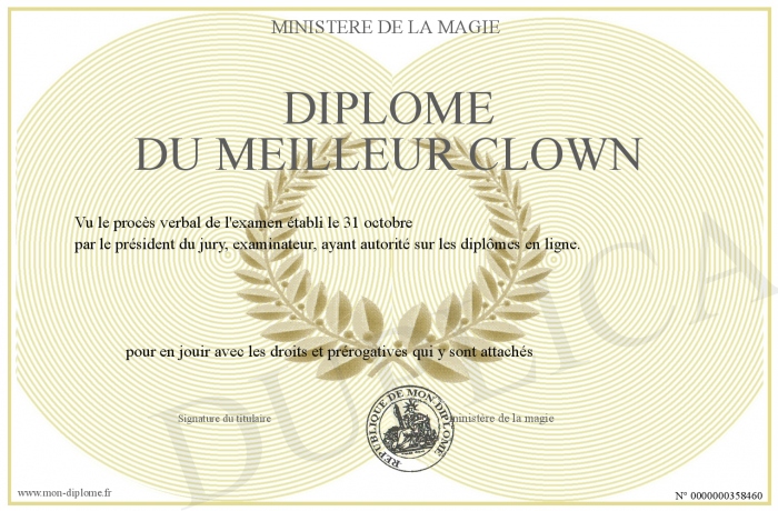 Envoyez par email votre diplôme du meilleur clown personalisé