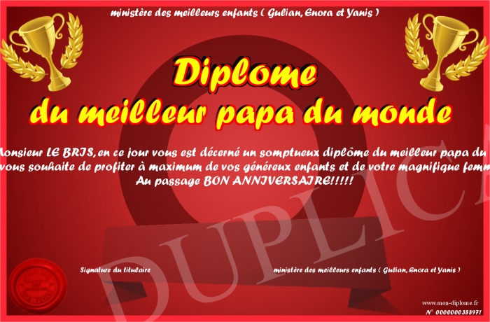Envoyez par email votre Diplôme du meilleur papa du monde personalisé