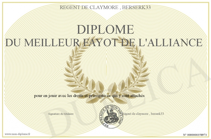 Envoyez par email votre Diplôme du meilleur fayot de l'alliance personalisé