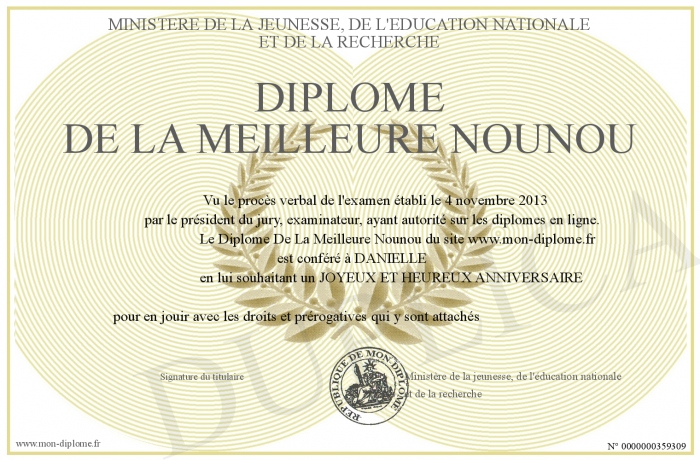 Envoyez par email votre Diplôme De La Meilleure Nounou personalisé