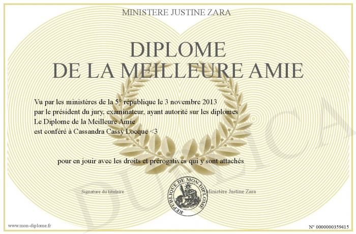 Envoyez par email votre Diplôme de la Meilleure Amie personalisé