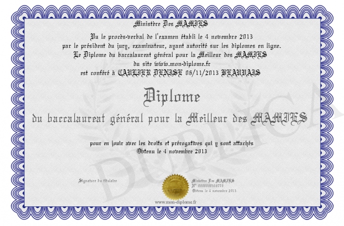 Envoyez par email votre Diplôme du baccalaureat général pour la Meilleur des MAMIES personalisé