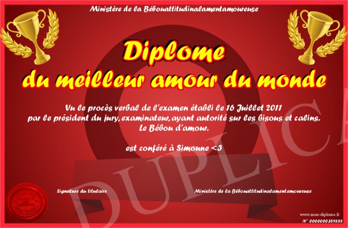 Envoyez par email votre Diplôme du meilleur amour du monde personalisé