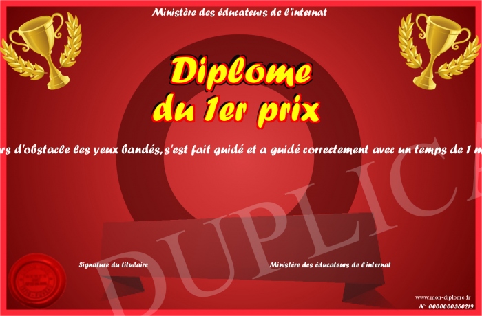 Envoyez par email votre Diplôme du 1er prix personalisé