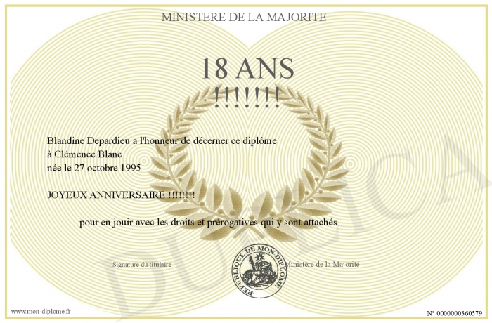 Envoyez par email votre 18 ans !!!!!!! personalisé