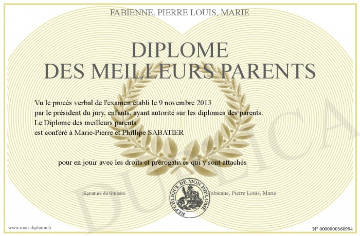 Envoyez par email votre Diplôme des meilleurs parents personalisé