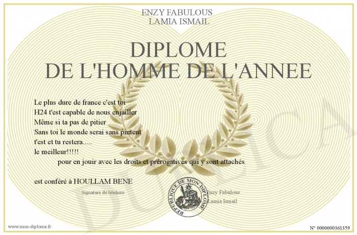 Envoyez par email votre Diplôme de L'homme de l'année personalisé