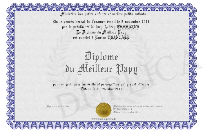 Envoyez par email votre Diplôme du Meilleur Papy personalisé