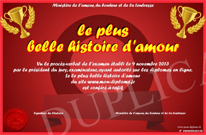 Envoyez par email votre le plus belle histoire d'amour personalisé