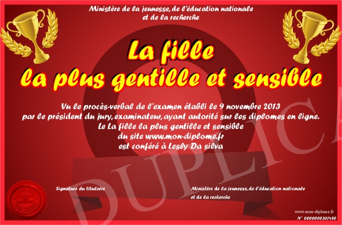 Envoyez par email votre La fille la plus gentille et sensible personalisé