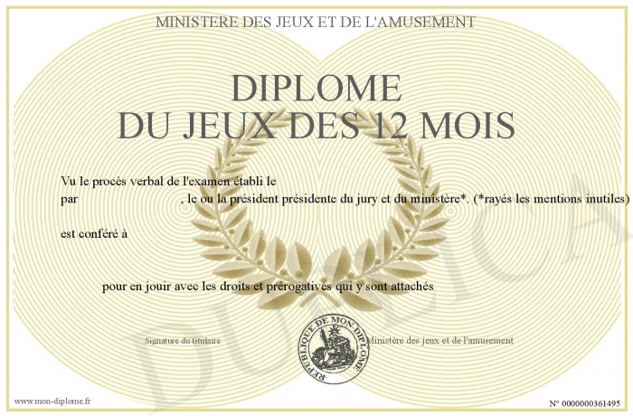 Envoyez par email votre Diplôme du Jeux des 12 Mois personalisé