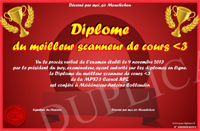 Envoyez par email votre Diplôme du meilleur scanneur de cours -3 personalisé
