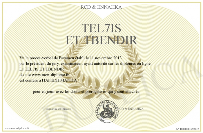 Envoyez par email votre TEL7IS ET TBENDIR personalisé
