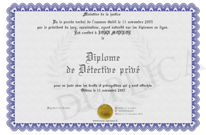 Envoyez par email votre Diplôme de Détective privé personalisé