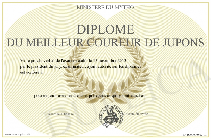 Envoyez par email votre Diplôme du meilleur coureur de jupons personalisé