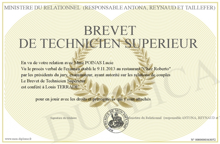 Envoyez par email votre Brevet de Technicien Supérieur personalisé