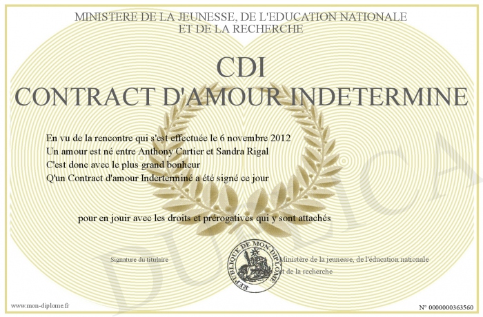 Envoyez par email votre CDI Contract d'amour Indeterminé personalisé
